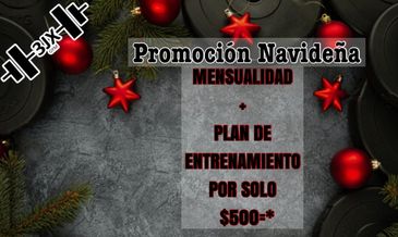 Nuestra promoción navideña está disponible hasta el 31 de diciembre. Por $500 pesos obtendrás una membresía mensual que incluye un programa diseñado por un entrenador personal. Para aprovechar la oferta, visita el gimnasio y consulta a uno de nuestros empleados. Esta oferta es válida para miembros nuevos y actuales.